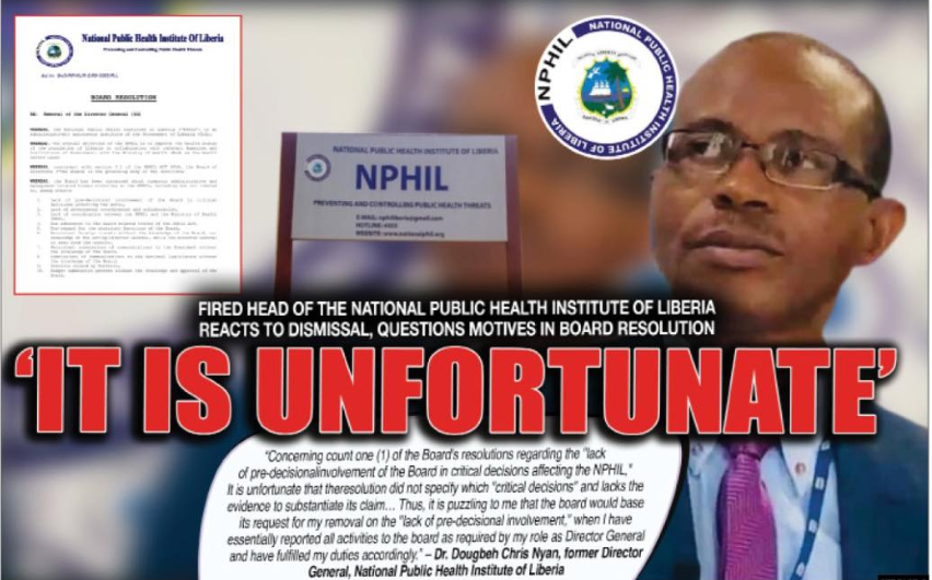 MONROVIA – Dr. Dougbeh Chris Nyan, the dismissed Director Basic of the Nationwide Public Well being Institute of Liberia (NPHIL), has described the Board of Administrators’ suggestion that led to his removing by President Joseph Boakai as “unlucky,” questioning each the motive and legality behind the board’s determination.