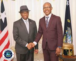 President Boakai in handshake with Dr. Nyan